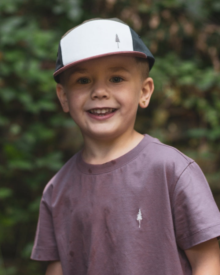This sustainable 5-panel cap for children aged 1-4 years combines style and comfort. Made from 100% organic cotton, the colorful colorblock design with tree embroidery on the side offers a modern look. Thanks to the size-adjustable band and 51 cm circumference, the cap fits comfortably and grows with your child. Made in Europe - perfect for little adventurers.