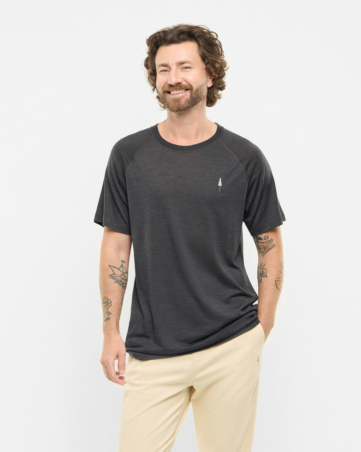 The TreeShirt Wool brings performance and comfort to your everyday life - whether you're out and about or enjoying relaxing moments indoors. The material mix of merino wool and TENCEL™ Lyocell from Lenzing ensures a particularly soft feel, regulates moisture and temperature and has a natural odour-neutralizing effect. The raglan cut offers optimum freedom of movement and a comfortable fit - perfect for an active and relaxed lifestyle. With subtle tree embroidery on the chest and a slightly mottled look, the shirt is also a versatile all-rounder.