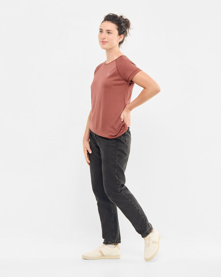 The TreeShirt Wool Women brings a breath of fresh air to your wardrobe - with functional materials and a feminine cut. The soft blend of temperature-regulating merino wool and breathable TENCEL™ Lyocell makes the women shirt the ideal companion for sporting activities or relaxing days. It feels comfortable against the skin, has an odour-neutralizing effect and ensures a balanced body climate at all times. The subtle melange look and fine details such as raglan sleeves round off the look - sustainable and versatile.