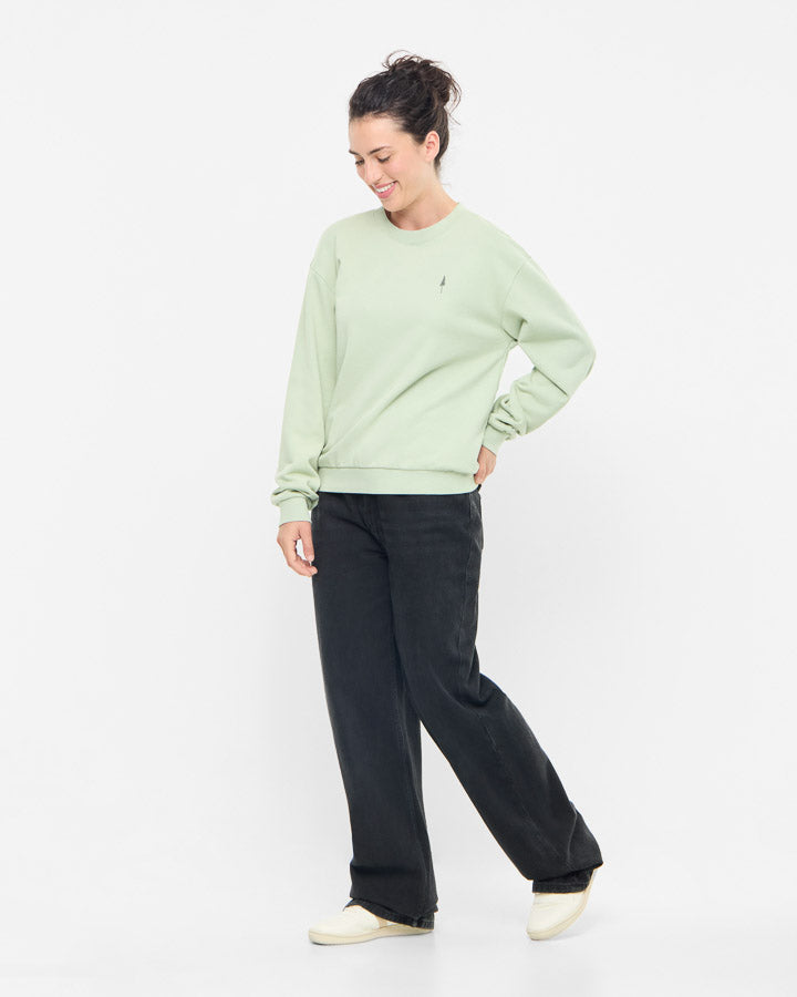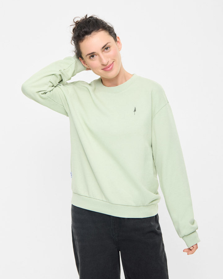 The TreeSweater Relaxed in Cool Matcha is a casual women sweatshirt for relaxed days - comfortable, sustainable and stylish at the same time. Made from 100% organic cotton, the soft GOTS-certified cotton sweater has a relaxed fit and is comfortable to wear. The fresh color brings lightness to your wardrobe, while the subtle tree logo shows your connection to nature. Ideal for everyday wear, leisure or layering - a conscious basic for every season.